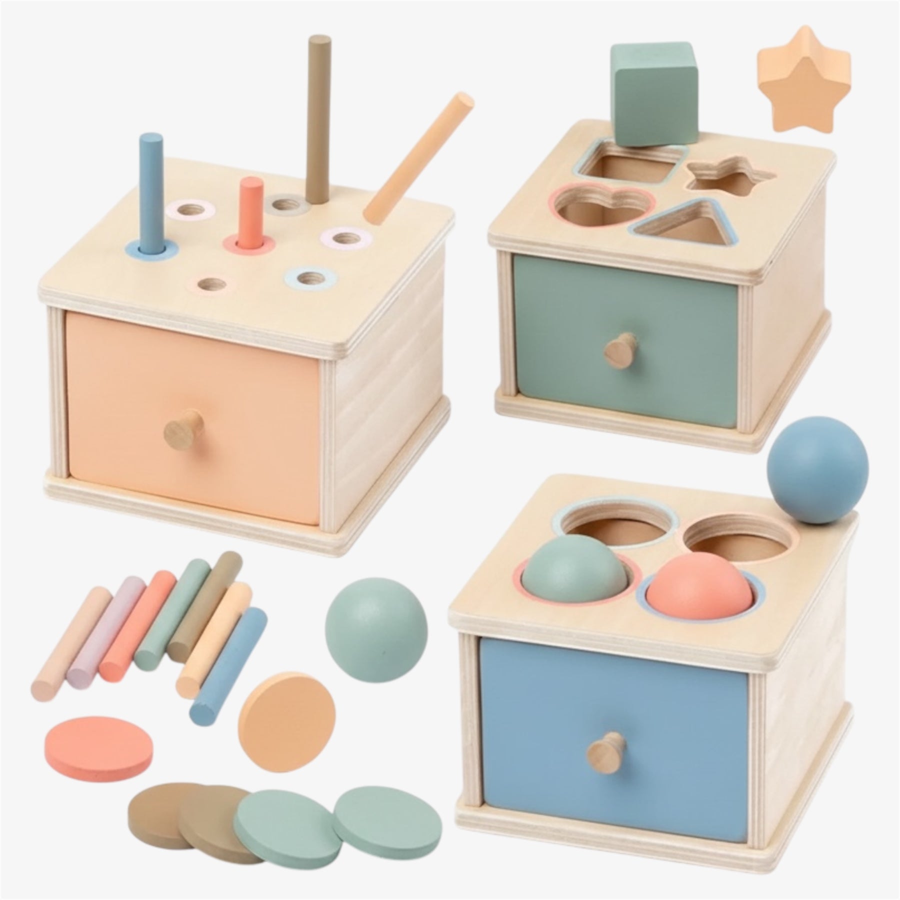 קופסת מיון צורות וצבעים מעץ טבעי המעודדת למידה מוקדמת, חיזוק מוטוריקה עדינה וקואורדינציית יד ,עין. צעצוע מונטסורי איכותי, בטוח ועמיד, שמתאים להתפתחות חכמה דרך משחק.