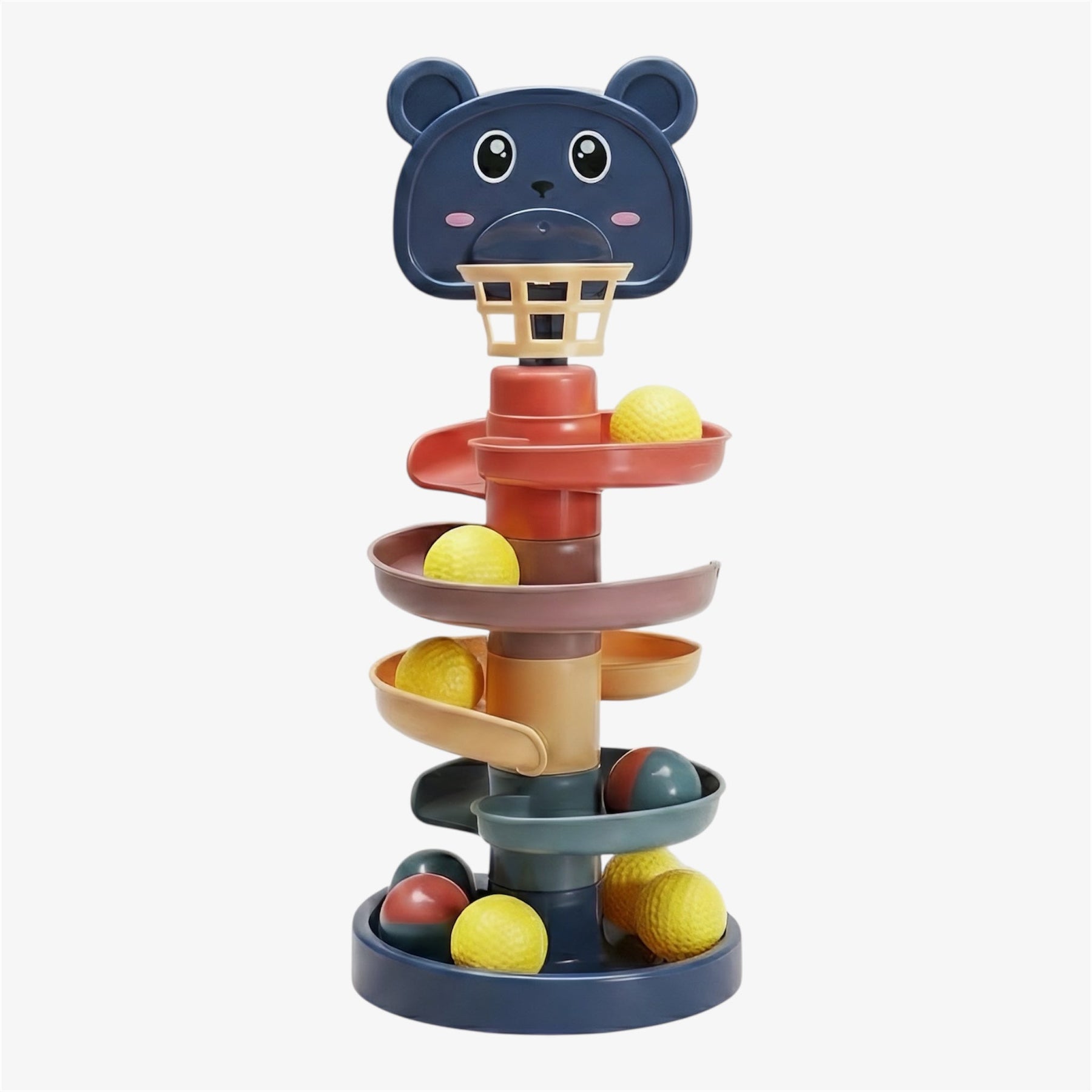כשהתינוק משחרר את הכדור ורואה אותו מסתובב ומתגלגל למטה, הוא לומד קשרים לוגיים, הבנה של רצף ושיפור חשיבה. זה משחק שנראה פשוט — אבל בונה יסודות חכמים.